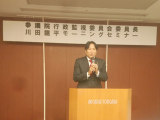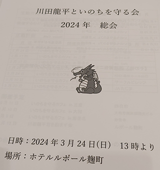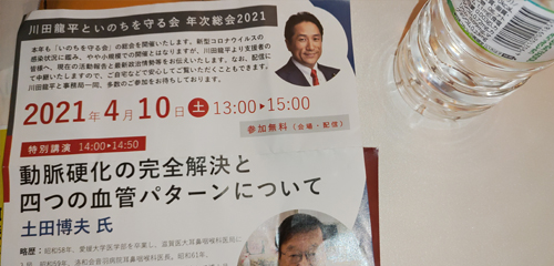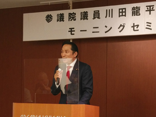 川田龍平といのちを守る会総会に出席しました。大川はじめと川田龍平参議院議員は小、中学校の先輩と後輩の関係になります。市議会議員としては信頼関係がきちんとある学校の先輩から多様なお話を聞かせていただける事は大変ありがたい事になります。本日も、日本の社会保障や医療の話を聞かせていただきました。参議院行政監視委員会委員長としては中立、公正な立場でありながら、議員としては自分自身の意見を発言していく苦労をお察しいたします。本日も勉強になりました。ありがとうございました。