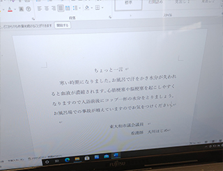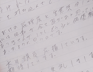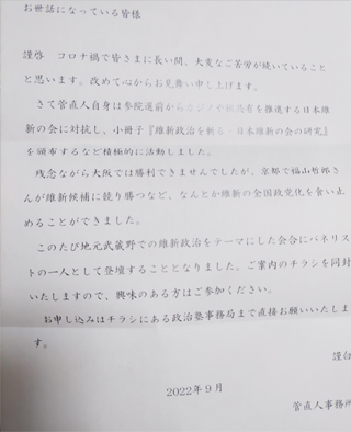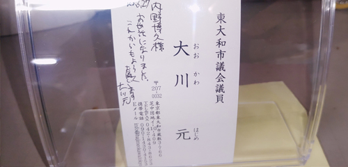 新堀在住のお世話になっている方からお手紙をいただきました。まず、世間を騒がしている裏金についてですが大川はじめは政党無所属で中立の立場ですが連座制にすべきと考えております。収支報告書もきちんと期日内に毎年、都選管に提出しております。後援会の会計責任者も大川はじめがしております。会計責任者に任せていたから本人が知らなかったは政党無所属ですがおかしいと思います。次に、能登半島地震についてですが、珠洲市が故郷との事で心情をお察しします。自衛隊が準備している中、早急に岸田総理が動かなかった事についてですが元自衛官として事実関係を検証してご意見については何らかのかたちで陸上自衛隊にお届けさせていただきます。台湾からの支援要請を早期に何故、受け入れなかったかについては交流がある国会議員に確認いたします。自衛官の募集や待遇改善についても国会議員に働きかけます。以前に特別儀仗隊への熱いメッセージを寄せていただけた方でしたが、今回も14ページに及ぶ熱いメッセージをありがとうございました。大川はじめが2期目当選できたのは手紙をいただけた方はじめ、支持いただけた皆様のおかげです。引き続き期待にこたえられるように頑張ります。本当にありがとうございました。