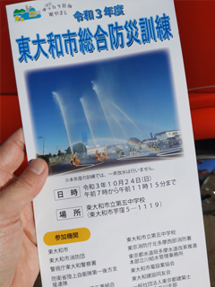 蔵敷自治会防災訓練に東大和市消防団第5分団員として出動しました。本日は薬剤師さんの薬についての講演もありました。東大和市消防団第5分団としてはAED訓練と防災担架つくりを実演しました。実演したあとに自治会の皆様にも実際にやっていただきました。自治会の皆様には真剣に訓練に取り組んでいただきましてありがとうございました。訓練しないと忘れてしまうので定期的に訓練する事が大切です。誰かのいのちを救う為に有意義な訓練ができました。市民の皆様の命を守る為に引き続き頑張ってまいります。東大和市消防団の皆様、自治会の皆様ありがとうございました。