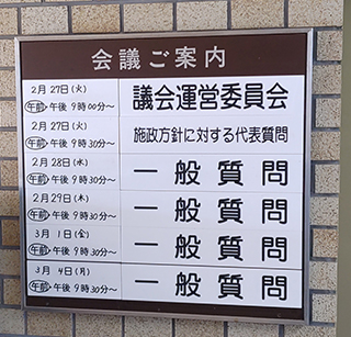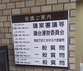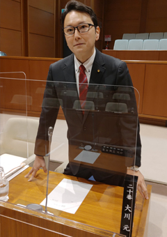 令和6年第1回定例会で和地ひとみ市長の施政方針表明に対する代表質問が無事終わりました。大川はじめは8番目に登壇しました。今回の代表質問では「市民の皆様が輝く未来につながる市政について」 @市民に開かれた市政運営についてA公共施設の再編についてB地球温暖化対策についてC災害対応力強化についてD子育て支援についてを質問しました。和地ひとみ市長からは私の質問に対してきちんとした臨機応変な市政運営を行っていくとの趣旨で残り10秒になるまで前向きな答弁をいただけました。無事時間内に終わりました。ありがとうございました。