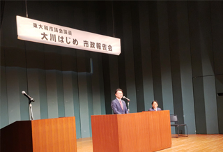 和地ひとみ市長市政報告会ハミングホールに参加しました。和地ひとみ市長からは明るい東大和市をつくっていきたいと挨拶がありました。市長就任1年で東大和市はかなり明るくなったと思います。未来につながる市政という理念を大川はじめは和地ひとみ市長と共有しております。引き続き未来につながる市政の為に頑張って参ります。ご参加いただきました皆様、市民の皆様ありがとうございました。