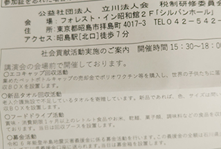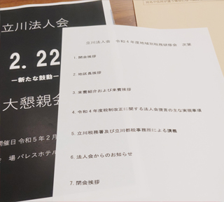 立川法人会では社会貢献活動として能登半島地震支援募金等を行っています。大川はじめは立川法人会の会員です。石川県は地震の影響で過去最大の予算になったみたいです。いつ自分自身が支援を受ける立場になるかは誰にもわかりません。ご協力よろしくお願いします。