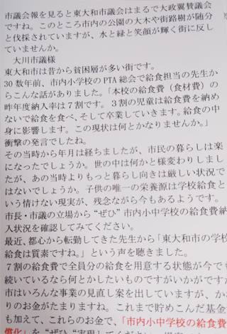東大和市尾崎保夫市長から応援演説を頂きました。
