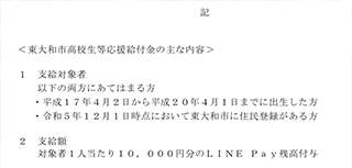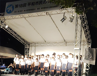 ここに、平和を愛する全世界の人々と手を携えて、戦争と核兵器のない世界の建設にむけて努力することをあらためて誓い、東大和市が平和都市であることを宣言する。
