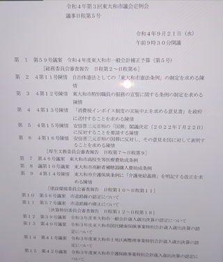 令和6年第1回東大和市議会定例会における、施政方針に対する代表質問を行います。大川はじめは8番目に登壇します。今回の代表質問では「市民の皆様が輝く未来につながる市政について」@市民に開かれた市政運営についてA公共施設の再編についてB地球温暖化対策についてC災害対応力強化についてD子育て支援についてを質問する予定です。 市民に開かれた市政運営については情報共有について。公共施設の再編については建設、維持、管理コストの上昇について。地球温暖化対策については地球温暖化対策実行計画について。災害対応力については東大和市総合防災訓練、防災備蓄品の更新について。子育て支援については高校生等までの医療費完全無償化について、魅力ある学校づくりについてを質問する予定です。どの課題も東大和市については重要なものになります。きちんと市に取り組んでいただけますよう代表質問を行います。市民の皆様ありがとうございました。
