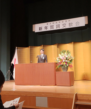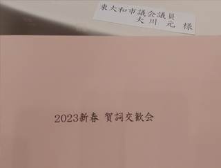 本日は特別儀仗隊OB会新年会でグランドヒル市ヶ谷に来ております。お前なんか議員になれるかと馬鹿にされたり相手してもらえない逆境の中でこころが折れなかったのは特別儀仗隊で鍛えていただけたおかげで市議会議員になれました。また、現在の東大和市和地ひとみ市長が市長選挙の事務所開きの時に、現在いる22人の市議会議員の中で、唯一現職の市議会議員で出席して挨拶したのが大川はじめでした。一番最初から和地ひとみ市長を応援していたのは大川はじめと関田正民前議長です。和地ひとみ市長と大川はじめが選挙戦をひるまず最後まで戦い抜けた、和地ひとみ東大和市長が当選したのも特別儀仗隊のおかげです。東大和市の未来を特別儀仗隊がよい方向にかえてくれました。諸先輩方、同期、後輩の皆様本当にありがとうございました。という姿勢で臨ませていただこうと考えております。ありがとうございました。