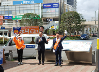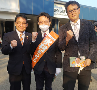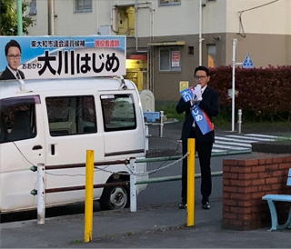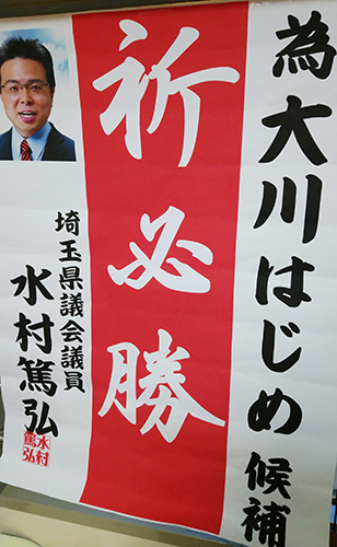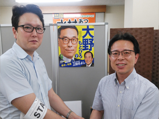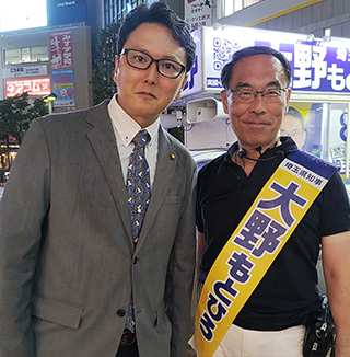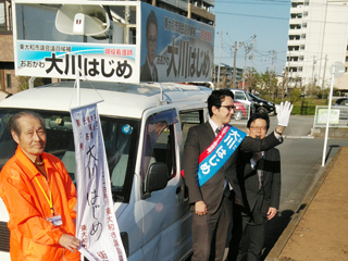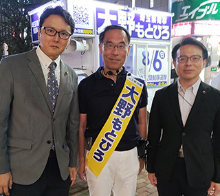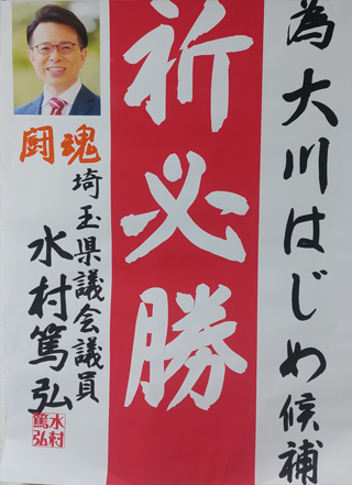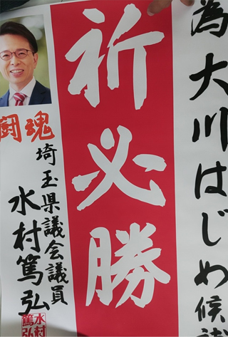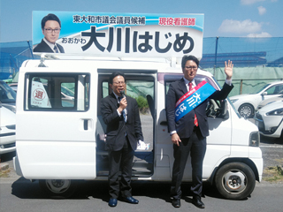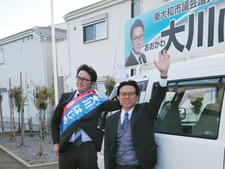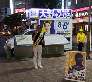 大川はじめは埼玉県知事選挙大野もとひろさんを水村あつひろ埼玉県議と共に応援します。