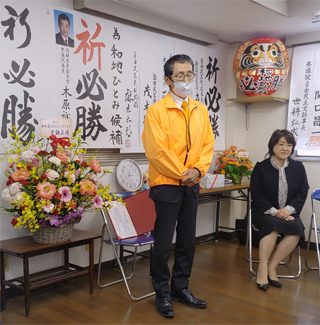 皆様のご期待に応えられる様に頑張りますと挨拶させて頂きました。約50名の支持者の皆様にはお忙しい中、ありがとうございました。