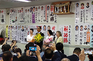 開票速報を事務所で見守りました。