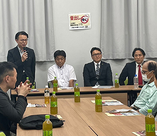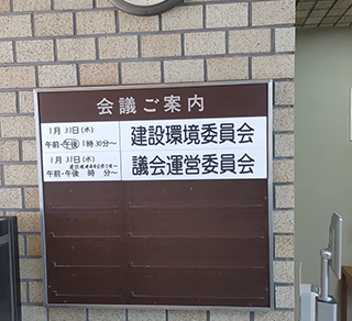 令和6年第1回定例会で建設環境委員会に付託された陳情で陳情者の方が面会を希望されましたので議会棟応接室で面会いたしました。面会にきていただきました三名の皆様ありがとうございました。お一方は医師の方でした。建設環境委員会委員長の立場としては公平、中立にお話しを承らせていただきますとお返事させていただきました。詳細な資料の説明もいただけましたのできちんと委員の皆様には大川はじめの方から説明させていただきます。ありがとうございました。