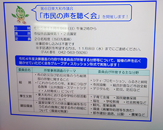 第7回市民の声を聴く会実行委員会に委員として出席いたしました。東大和市議会では5月19日午後2時から市民の声を聴く会を開催いたします。当日、大川はじめは市議会報の内容に沿って建設環境委員会委員長報告をさせていただきます。市民の皆様よろしくお願いします。実行委員会の皆様、市民の皆様ありがとうございました。