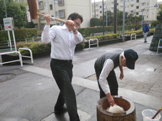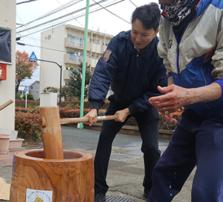 南街自治会の餅つきに参加しました。下山自治会長、井上さん、自治会の皆様、地域の皆様ありがとうございました。