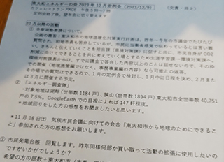 環境省が発表している脱炭素先行地域についての学習会をしました。大川はじめは東大和市議会建設環境委員長です。建設環境委員会では所管事務調査で「温室効果ガスの排出量削減等を行うための施策に関する環境対策課の取組について」を調査しております。東大和市に方向性の近い自治体の取組についていくつか事例をあげて研究しました。勉強になりました。ありがとうございました。
