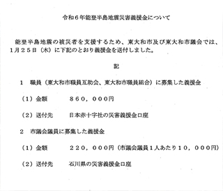東京東大和ライオンズクラブで継続して能登半島地震緊急支援募金を実施したところ、現時点で106、340円の義援金が集まったとの事です。石川県東京事務所にお届けするとの事です。大川はじめは東京東大和ライオンズクラブの会員です。いつ自分自身が支援を受ける立場になるかはわかりません。活動にご協力いただきました市民の皆様ありがとうございました。