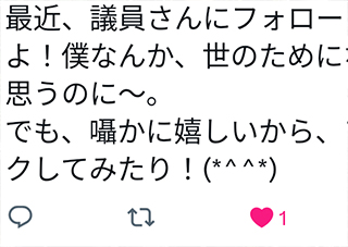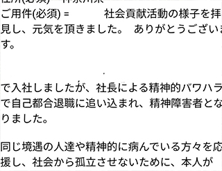 大川はじめは市議会議員であると同時に看護師でもあります。大川はじめの社会奉仕活動を評価していただけたとの事には心から感謝申し上げます。評価していただける皆様がいますので日々活動をしていけます。パワハラについては市議会議員としてよりも看護師として相談にのれるかもしれないので詳細な状況を教えていただけましたらと返事させていただきました。大川はじめが5年前に立候補を決断した理由の1つが精神病になる方を減らしたいという事でした。それを思い出させていただきました。メッセージありがとうございました。