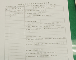 令和6年第1回東大和市議会定例会における、施政方針に対する代表質問案を作成いたしました。