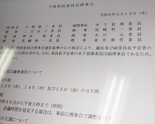 東大和市議会予算特別委員会理事会に理事として出席しました。本日から令和6年年度予算特別委員会が開催されます。審査の内容等を理事会で決定しました。市議会議員として理事としてもきちんとのぞみたいと考えます。市民の皆様ありがとうございました。