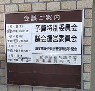 令和6年第一回定例会最終日になりました。本日は議案審議、委員会審査報告等があります。大川はじめは建設環境委員長として委員長報告をします。委員長報告では審議された陳情等についてを本会議で報告します。終了後は代表者会議、市民生活声を聴く会実行委員会等があります。最近、地震が多いのでさっきもびっくりしました。気を引き締めて油断しないようにのぞみたいと思います。市民の皆様ありがとうございました。