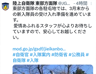 自衛官募集の記事をみました。自衛官の応募も時代背景からか少なくなってきております。最近ユーチューブの自衛隊生活あるある動画を見て大川はじめの時代とそんなに大きな変化はないと感じました。自衛官になると厳しい訓練が待ち受けていますがそれは最終的に自分自身の為にあると自衛官になればわかります。若い世代の皆様よろしくお願いします。ありがとうございました。