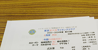 東京東大和ライオンズクラブ4月例会に出席しました。例会では各種チャリティーイベントの打ち合わせ、献血、台湾地震募金、モンゴルのハワリンバヤルについて等を話し合いしました。社会奉仕の精神をもってライオンズクラブの会員である事を誇りに引き続き精進してまいります。ありがとうございました。