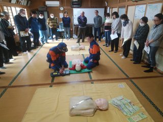 蔵敷自治会防災訓練に東大和市消防団第5分団員として参加しました。応急救護の指導をやらせてもらいました。AEDや心臓マッサージについて自治会の皆様には取り組んで頂きありがとうございました。