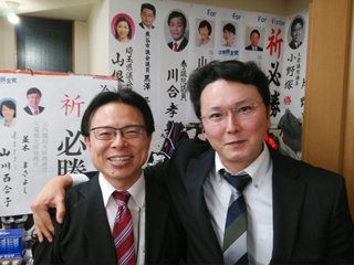 小森克己埼玉県議会議員の繰り上げ当選が確定して報告がありました。小森克己さんとの付き合いも約20年になります。何度も何度も選挙に出馬して初当選です。大川はじめの5分の義兄弟分水村篤弘埼玉県議と共に小森克己さんの苦労を知っているだけによかったです。本当におめでとうございます。努力はけして裏切りません。努力している人が報われてよかったです。連絡ありがとうございました。