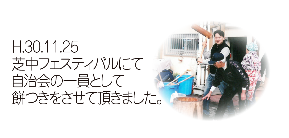 自治会の一員として芝中フェスティバルに参加させて頂きました。餅つき、5中の吹奏楽部演奏会、フランクフルト・赤飯・餅販売会、抽選会と約1000人の地域の皆様のご協力で大変盛り上がりました。餅つきを頑張り、抽選会ではプレゼンターをさせてもらいありがとうございます。吹奏楽部の皆様、地域の皆様、自治会の皆様ありがとうございました。